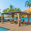 • [STURDY ALUMINUM FRAME]: Our gazebos for patios feature a rugged steel construction powder coat finish that won't scratch, peel, corrode, or rust. Comes with a pre-drilled base and is supplied with expansion screws for concrete floors. Designed for sturdy installation and helps maintain stability for years. Tip: If installing on wood floors, buyers need to purchase wood panel-specific expansion screws.