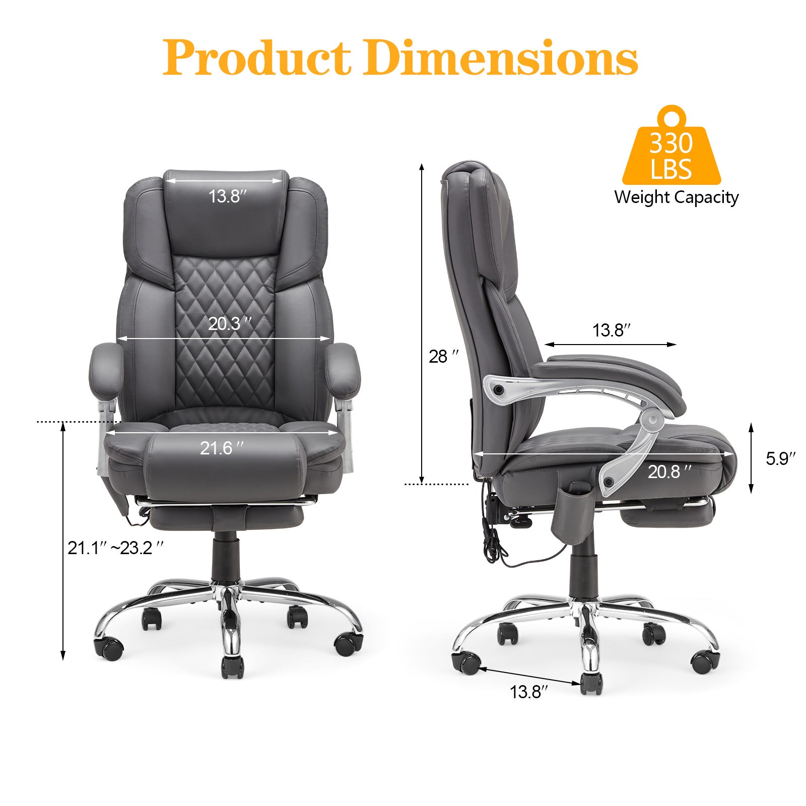 Seat Size 21.6"W x 20.8"D