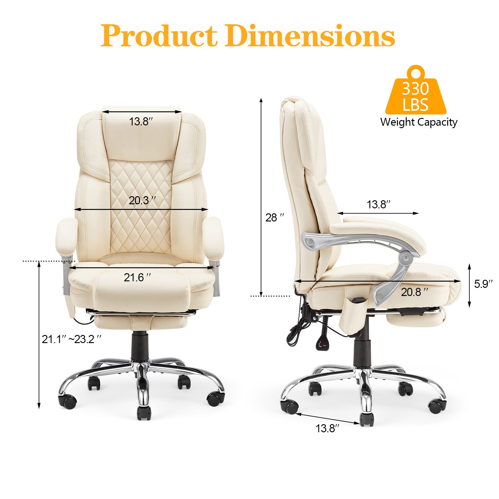 Allgoodsmarketstore Beige High Back Chair, Comfortable Office Chair with Footrest, Heat and Masage