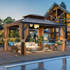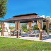 Built for versatility, the Allgoodsmarketstore 12x14 Gazebo's double track system lets you hang mosquito nets and curtains simultaneously. This metal-roofed gazebo is ideal for customizing outdoor spaces.