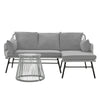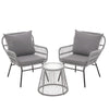 Compact Round Table for Convenience The balcony furniture set's matching coffee table has a metal top with a sturdy iron base, providing a non-tippy tabletop for drinks, snacks or decorations.The minimalist design fits perfectly with the sofa chair.
